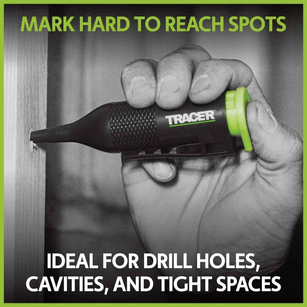 The TRACER Trueshot Chalk Marker Kit is designed for accurate marking in hard-to-reach areas. It allows you to mark inside holes from 0mm to 100mm deep using a simple point-and-spray action, creating a clear and consistent cross mark on the surface.