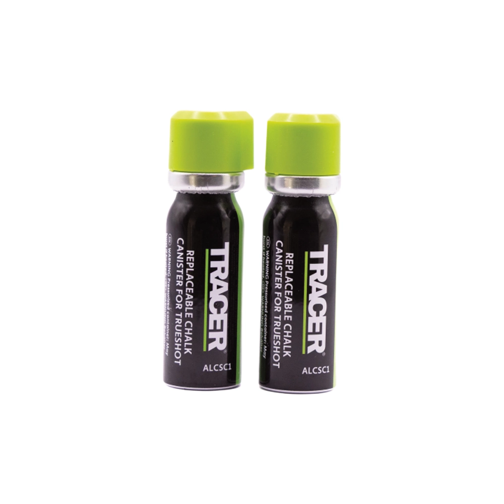 The TRACER Trueshot Replacement Chalk Canister 2-Pack is designed for quick and clean refilling of the TRACER Trueshot Chalk Marker. Each canister delivers high-visibility green marks with consistent performance, making it suitable for marking on a range of surfaces.